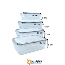 BUFFER® 4'lü İç İçe Kilitli Kapaklı Plastik Erzak Saklama Kapları gıdalarınızı ilk günkü tazeliği ile muhafaza etmenizi sağlar Kapaksız olarak Buzluk ve Bulaşık Makinesinde kullanabilirsiniz
